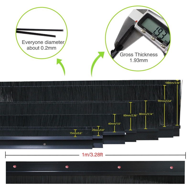 - Generous Dimensions: The door sweep brush length of 39.37 inches (1000mm), with a total height of 2.48 inches (63mm) and a brush height of 3.6 inches (90mm).