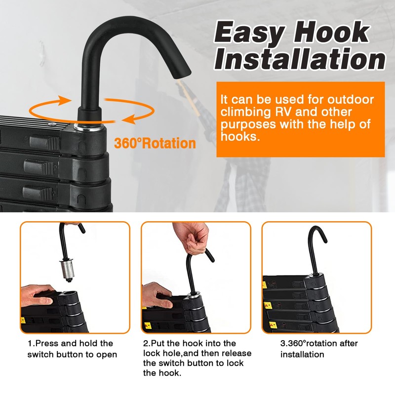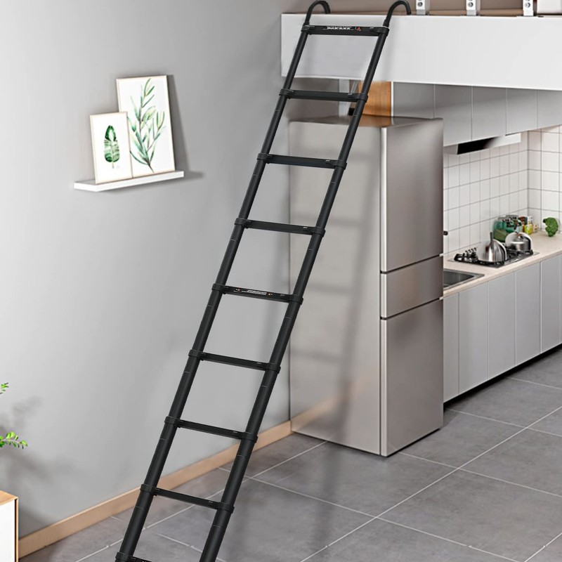- ✅【Independent locking mechanism】The ladder can be freely retractable, you could adjust the height of the ladder to specific requirements, upgraded with independent button adjustment of each section can effectively prevent pinching hands when contracted.