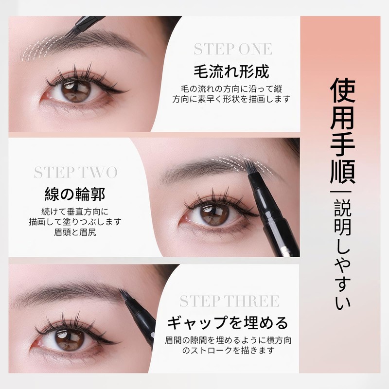 - 【4D Liquid Eyebrow】Eyebrow pencil with unique 4-end split tip design that allows you to draw a variety of eyebrow shapes. It is easy to draw and draw without any unevenness, and the color and thickness are available. You can draw natural, strong eyebrows with just this eyebrow pencil