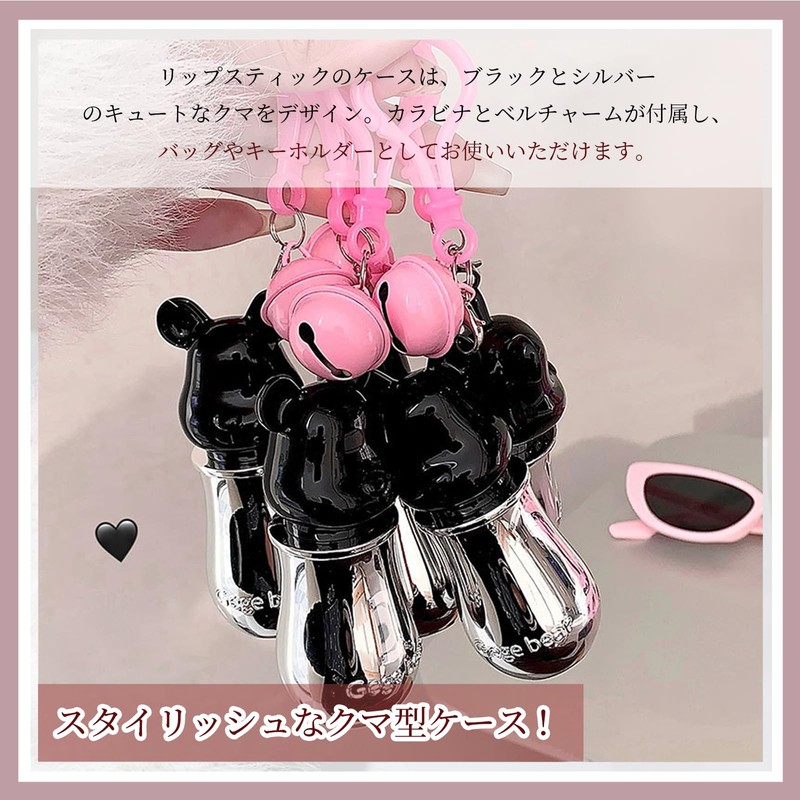 • 【STYLISH BEAR SHAPE CASE】The lipstick case is designed with cute bear in black and silver. Comes with a carabiner and bell charm, can be used as a bag or keychain