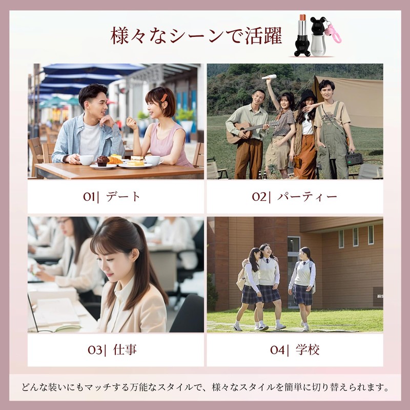 - 【STYLISH BEAR SHAPE CASE】The lipstick case is designed with cute bear in black and silver. Comes with a carabiner and bell charm, can be used as a bag or keychain