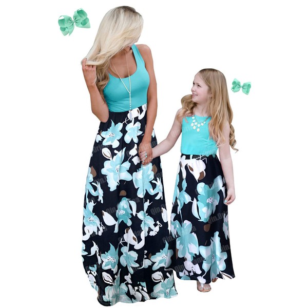 Qin.Orianna Mommy and Me Boho Floral Family Matching Maxi Dress with Pocket for Mother’s Day Green