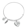 Qina C Sterling Silver Rose Husband & Wife Heart Feather Dangle Charm Adjustable Wire Bangle Bracelet