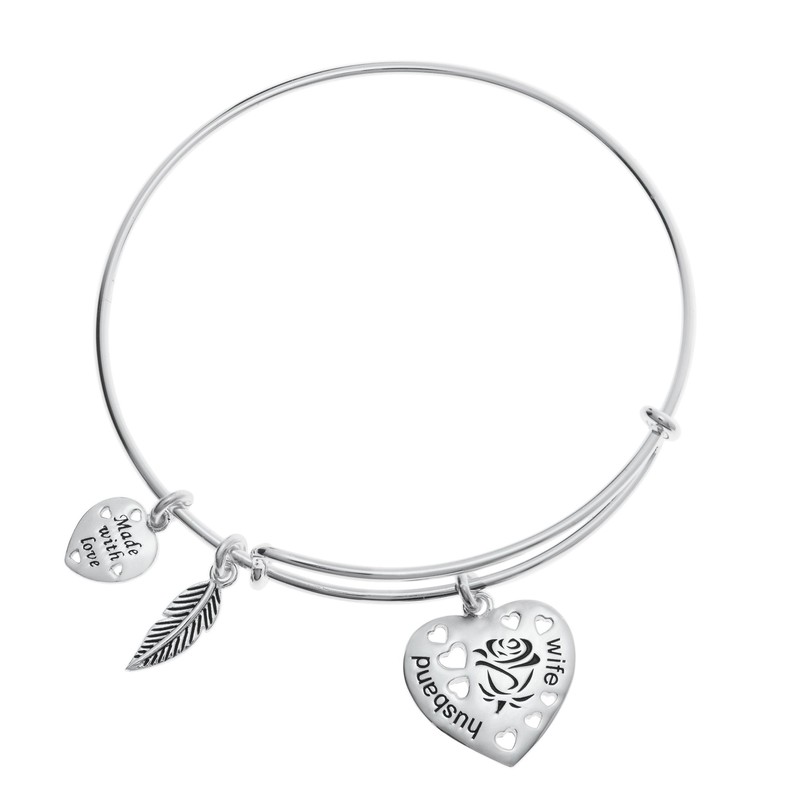 Give someone special a memorable gift with this bangle bracelet. It is a gift representing the love between a husband and a wife. The bracelet is made of sterling silver and is adjustable up to 9.5".