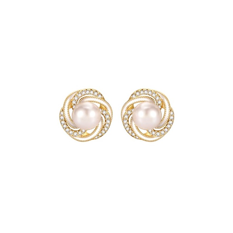 QINGANRAN Freshwater Pearl Stud Earrings With Cubic Zirconia Pearl Earrings Hypoallergenic Jewelry for Women, 1, Yellow Gold Plated, No Gemstone