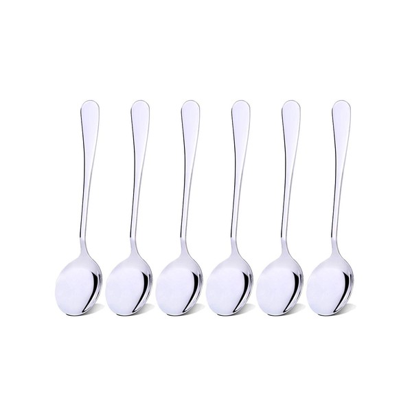 Qinglele 304 Stainless Steel Round Soup Spoons Set Of 6, Dinner Spoon, 7.4 inches, 6 Pcs Spoon (6 Pcs, 1)