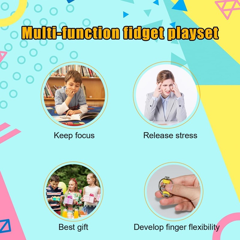 - STRESS RELIEF TOY SETPlay some finger games to focus attention quickly without distraction, help to confront stress and anxiety from work and study. Take them to the office, school, home or station