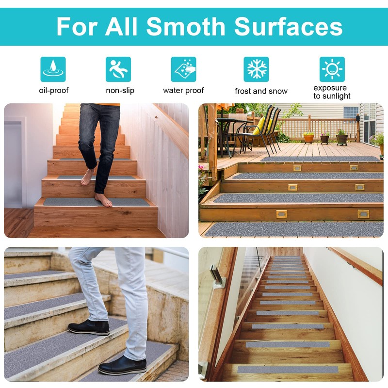 - Works on any weather: Our non skid tape for stairs was specifically designed to withstand heavy foot traffic and any weather conditions, including rains, snow, wind. outdoor stair treads non-slip creates an exceptional long term grip on all smooth surfaces for many years