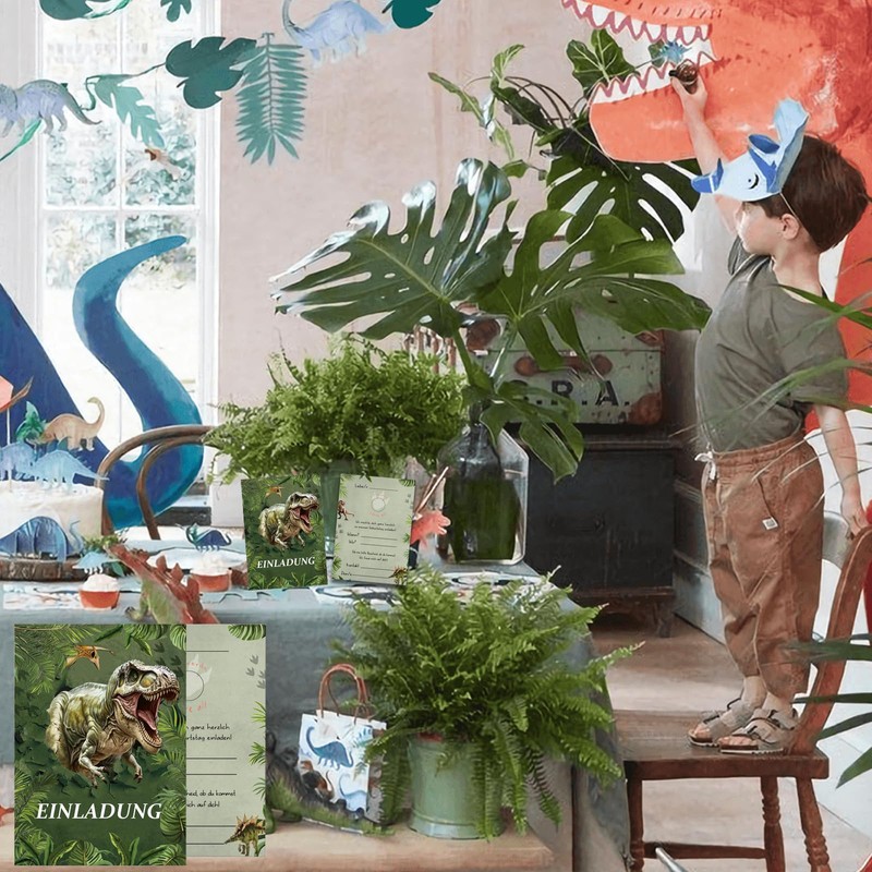 - Dinosaur party for all children: Whether it's a dinosaur world birthday party for an adventurous boy or an adventurous girl, a dinosaur baby shower or another children's party - we have the invitations for you! Invite all friends and family with 12 adorable double sided cards