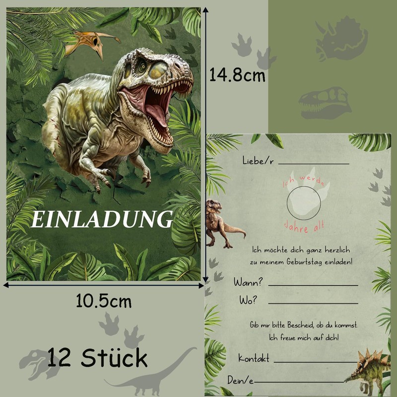 - Perfect size: dinosaur invitation cards children's birthday from the Jurassic period are full of personality and humour, making them a great start to an unforgettable party. Each party invitation with dinosaur cards is about 10.5 x 14.8 cm. A beautiful invitation card set will be given to your friends