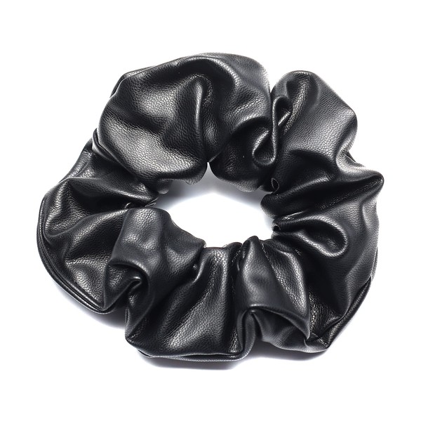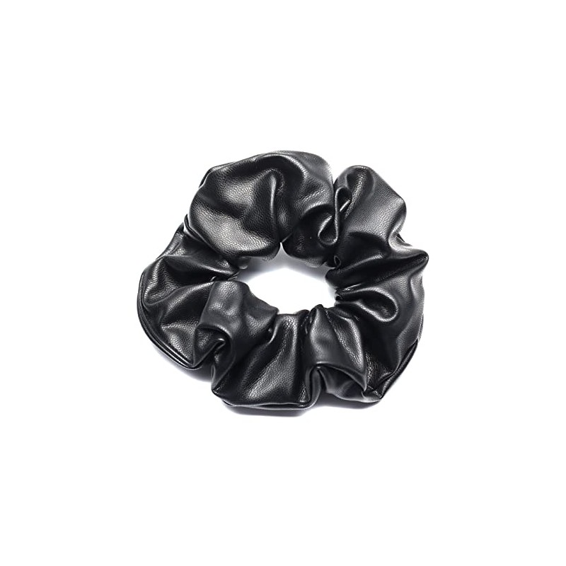 QinGoo Large Stylish Leather Leather Scrunchie Black Hair Elastic Hair Accessory Cute Korean Women's 1 Piece (Black)