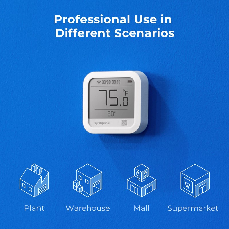 Qingping商用温湿度計S、 Wi-Fiネットワーク接続、 Qingping IoTでリモート観測対応、 マルチシーン対応、プロレベルの応用、 警報通知を送信、 大容量充電可能リチウム電池