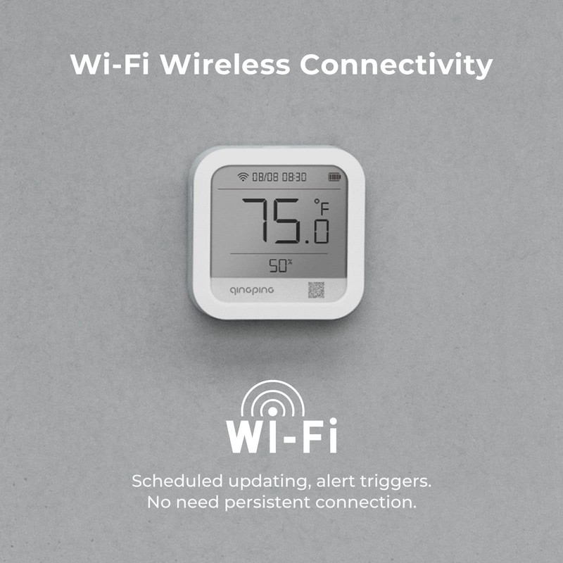 - 【Wi-Fi接続、リモート観測対応】製品はWi-Fi接続可能で、Qingping IoTアプリまたはウェブサイトを通じてリモート観測を行うことができます。データの報告、収集の間隔、温湿度の上限と下限は、自由に設定可能です。テキストメッセージ、メール、Appプッシュなどの方法でインスタントアラート通知を送信するように設定可能です。