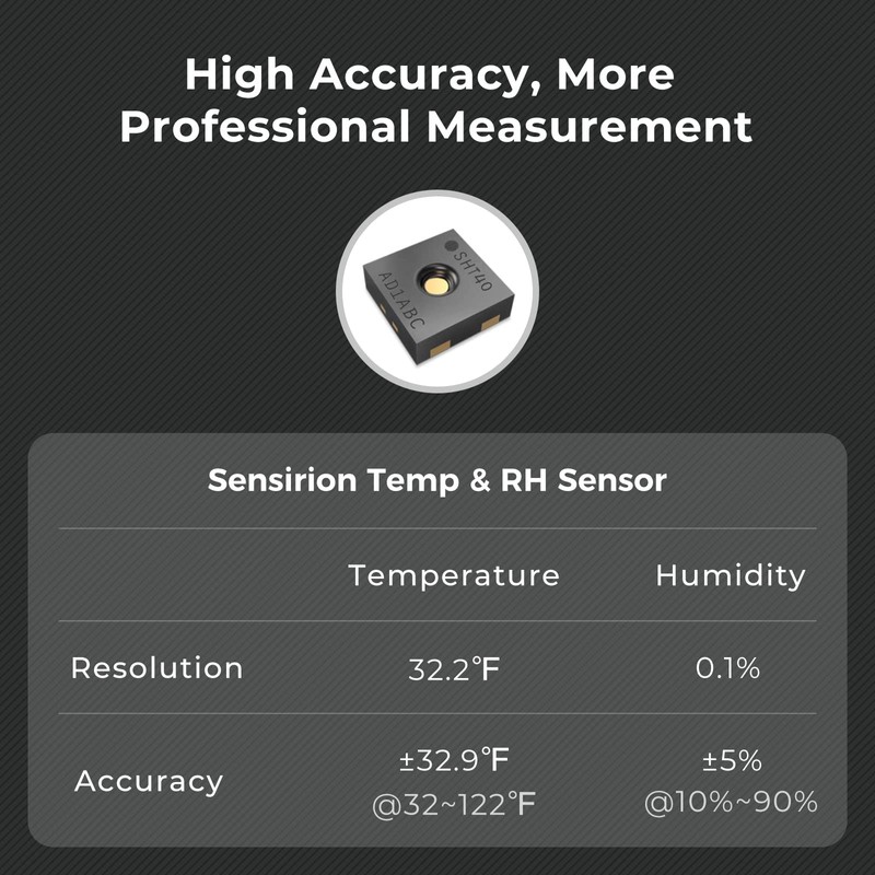 - 【大きい観測範囲、応用シーンが広い】製品にはスイスのSensiron高精度センサーが内蔵されています。温度観測範囲:-20 ~ 50°C、湿度観測範囲:0〜99.9%RH。工場/倉庫/デパート/スーパー/病院/薬局/酒蔵/ビニールハウスなど、様々なシーンで使用されています。*湿度>90%の環境で長期間放置して使用しないでください。