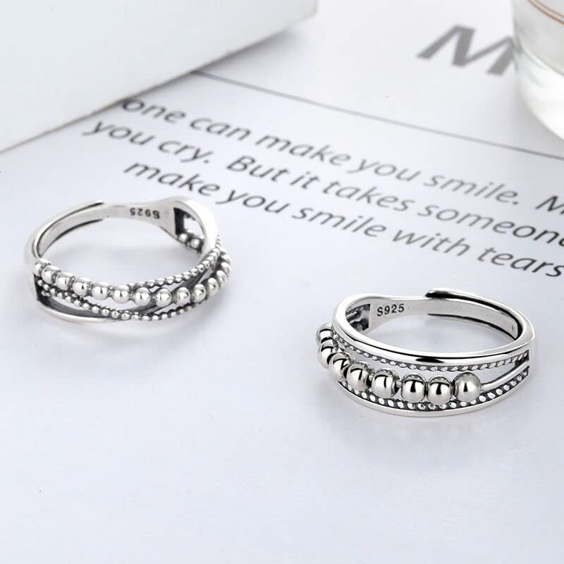 - Premium material, comfortable to wear. These open rings with Anxiety spin ring are made of 925 sterling silver, surface plated made of real gold and silver, soft and adjustable, nickel and lead-free and lightweight. Spin beads rings are durable and robust and you can easily adjust their size. (Can be adjusted to size 6-9)
