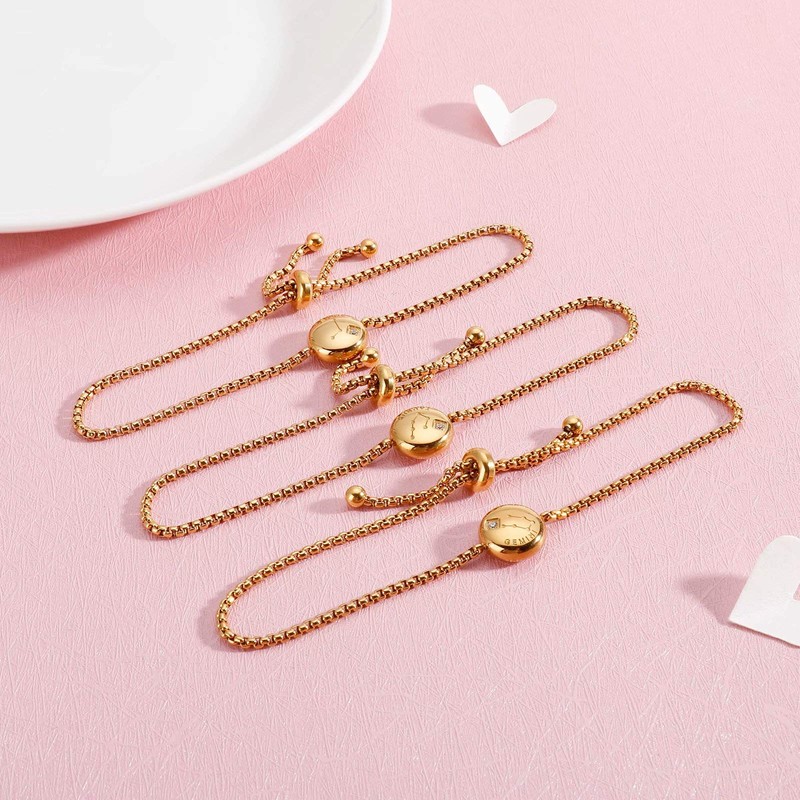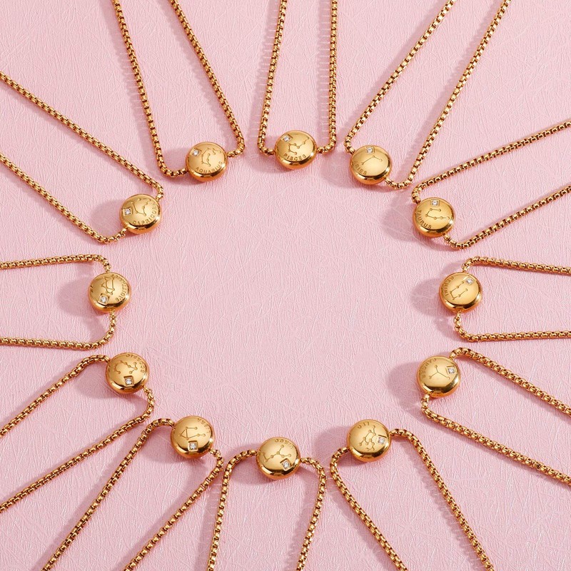 - Constellation bracelet Aries bracelet (3.21-4.19) The constellation bracelet is made of titanium steel as the main material, inlaid with high-quality cubic zirconia, and the surface is gold-plated. 12 constellation bracelet, each month has its own unique constellation bracelet, which can meet everyone's needs. Adjustable chain length: 6.7~9 inches. Gold is perfectly matched with zircon, zircon can reflect the charming light like diamond