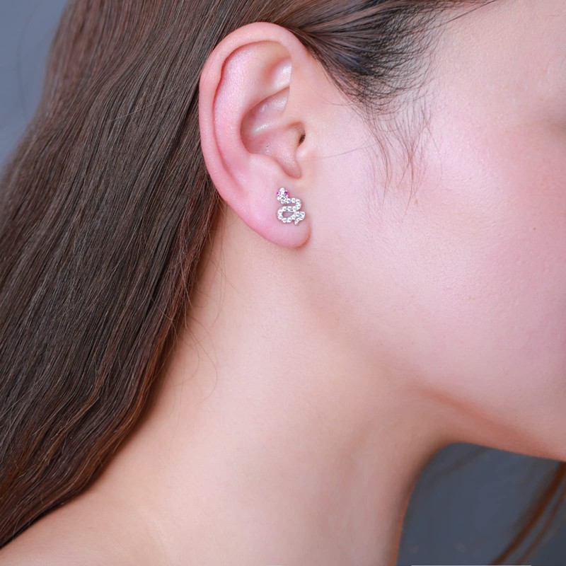 - These snake ear studs are crafted from sterling silver.Platinum plated and inlaid with high quality zircon, free of nickel, lead, cadmium and any harmful metals.Luxurious, classic and retro, it perfectly matches your wearing style and jewelry, making you the center of attention in the crowd.