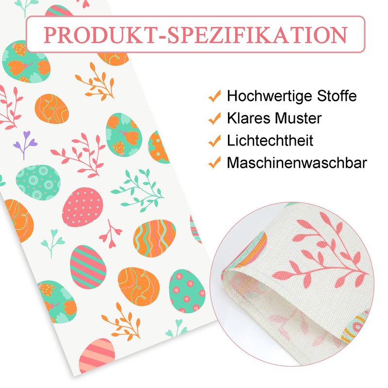 - Decorative Easter: This Easter table runner makes your Easter table less monotonous. Colourful Easter placemats are elegant and beautiful, rich in Easter elements and offer you the perfect decoration Easter.