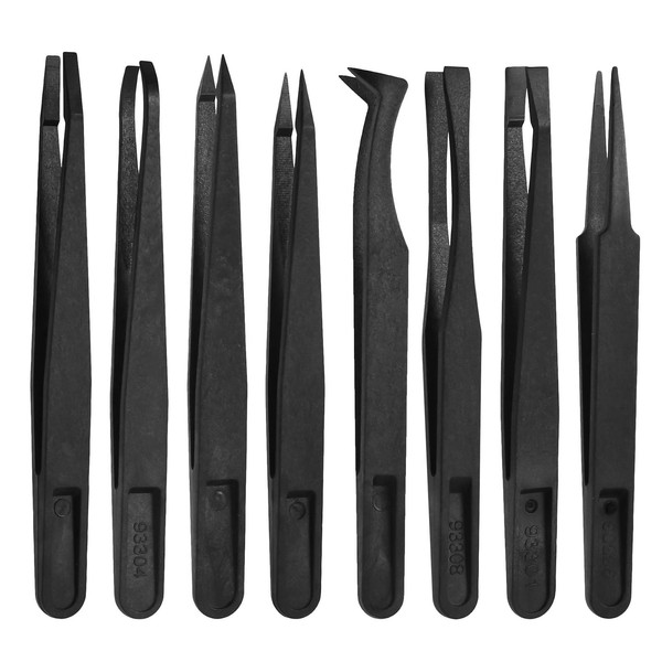 QINREN 8Pcs Anti-Static Plastic Tweezers Set, Multifunctional Precision Tweezers Set Slant Flat Tip Tweezer Pointy/Curved Tips Tweezers for Electronics, Jewelry-Making, Laboratory Work, Repairing