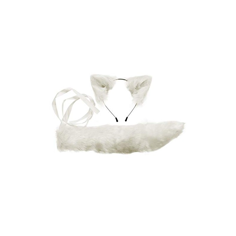 QinRuan Faux Fur Anime Dress Up Set Fox wolf Tail and Cat Ears Costume Party ...