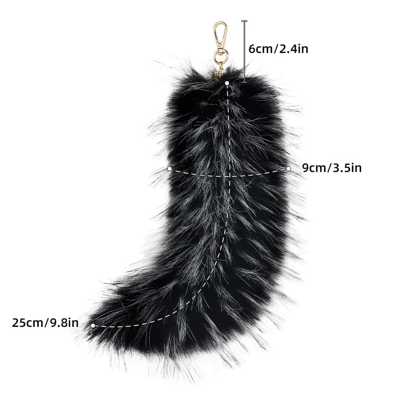 QinRuan Fluffy women's bag fox tail pendant keychain, cosplay faux fur animal tail keychain hanging chain hook 9.2in