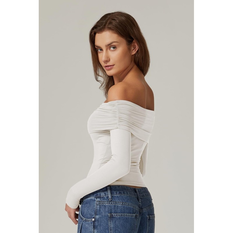 - Elegantly Minimalist Design: Ideal for day-to-night styling,this long sleeve crop top features a slim fit and a folded off shoulder look with a gathered side seam, which elegantly shows off your shoulders and sexy collarbones