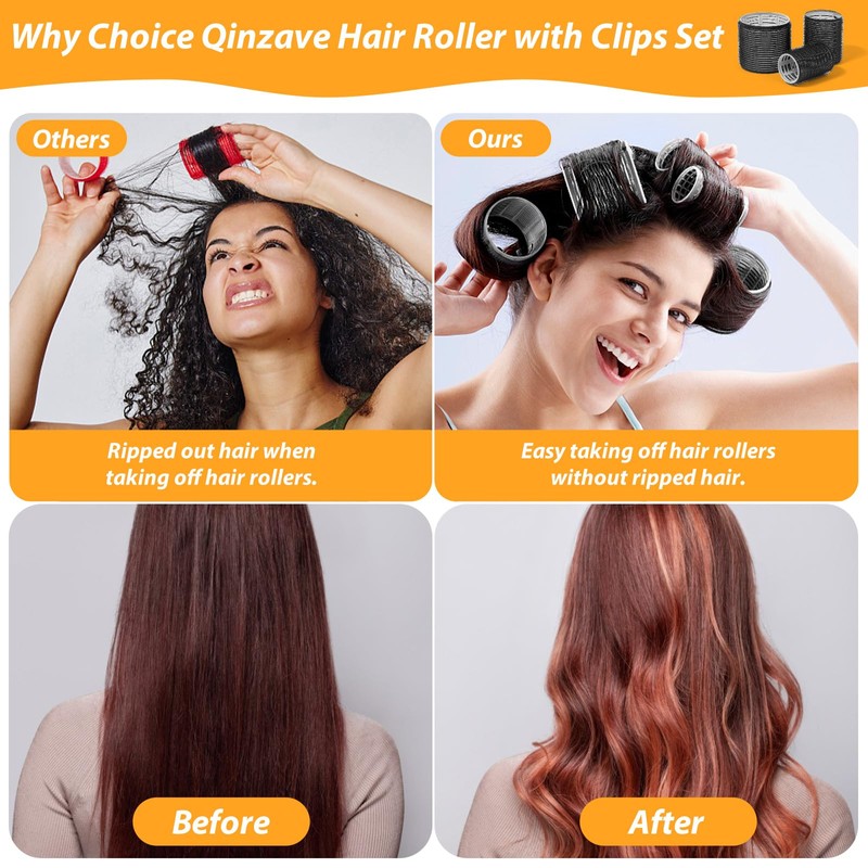 - Safe Heatless Curler RollerThe Qinzave hair roller is a physical curling tool, which is reusable and harmless, and does not need heating or chemical additives. With this self-grip hair roller set, you don't have to spend a lot of money on a perm in the hair salon. The large hair rollers set can make your hair look and feel healthier, and reduce the terrible situation of hair drying, hair loss, and knotting caused by dyeing