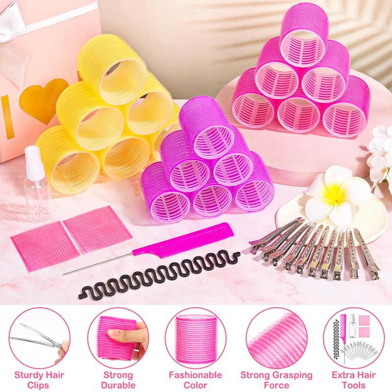 - 【3 Different Size Hair Roller】Jumbo hair roller set including 3 different sizes jumbo, large, and medium. This self-grip hair roller is good for long, medium, short, and shoulder-length hair. Multiple-size hair rollers can create any size of curls, lift, and volume. you can use a hair roller to make waves, retro rolls, air bangs, and other shapes for your bangs or hair tails. The self-grip hair rollers can instantly improve your face value in a short time.