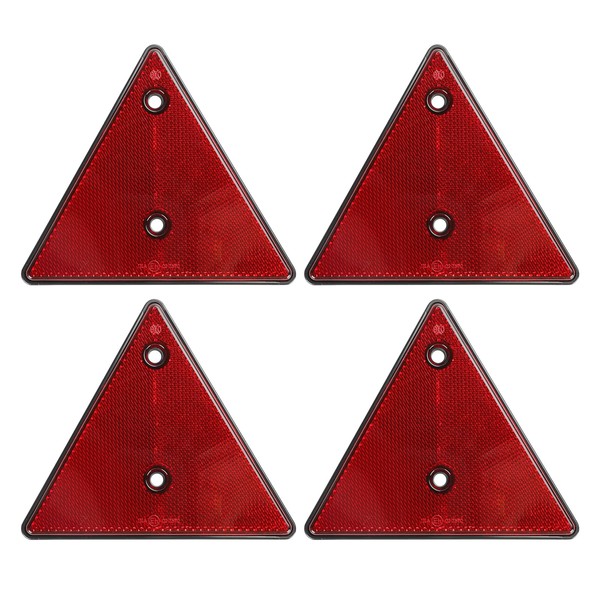 Qiping 4 Pack Red Trailer Triangle Reflectors, Screw-on E-Mark Approval Rear Triangle Reflector for Caravan, Truck, Van