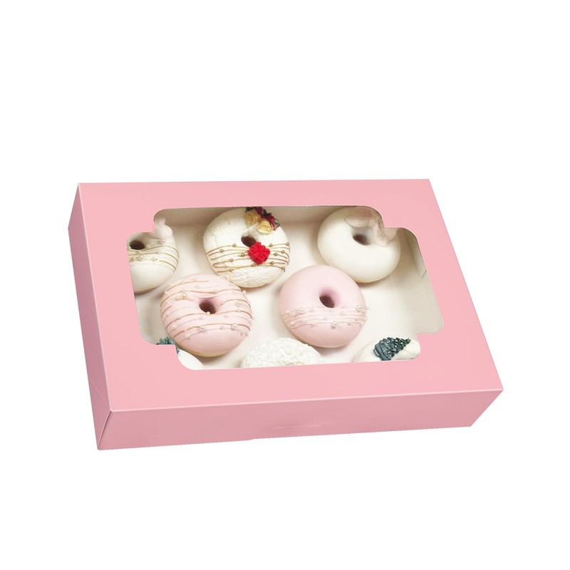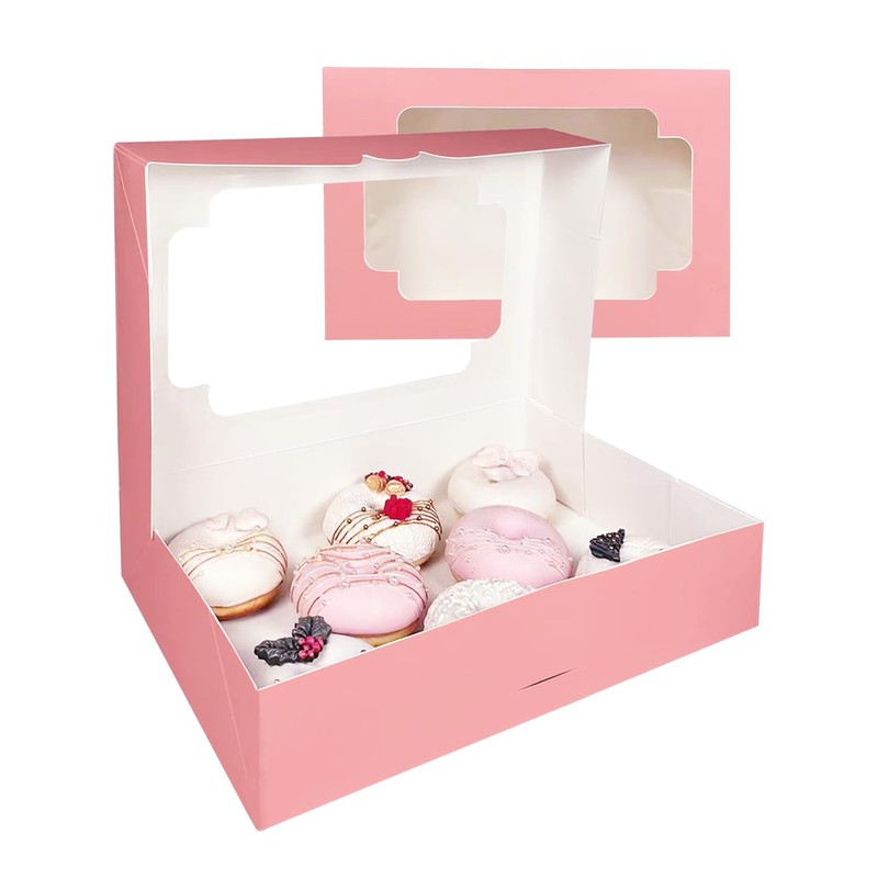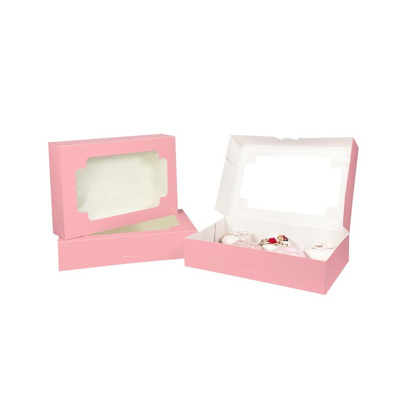 qiqee Pink 12x8x2.5 Inch Cookie Box with Window 20Pcs Bakery Pastry Macaron Bakery Box for Packaging (Auto-pop Up)