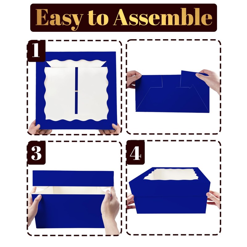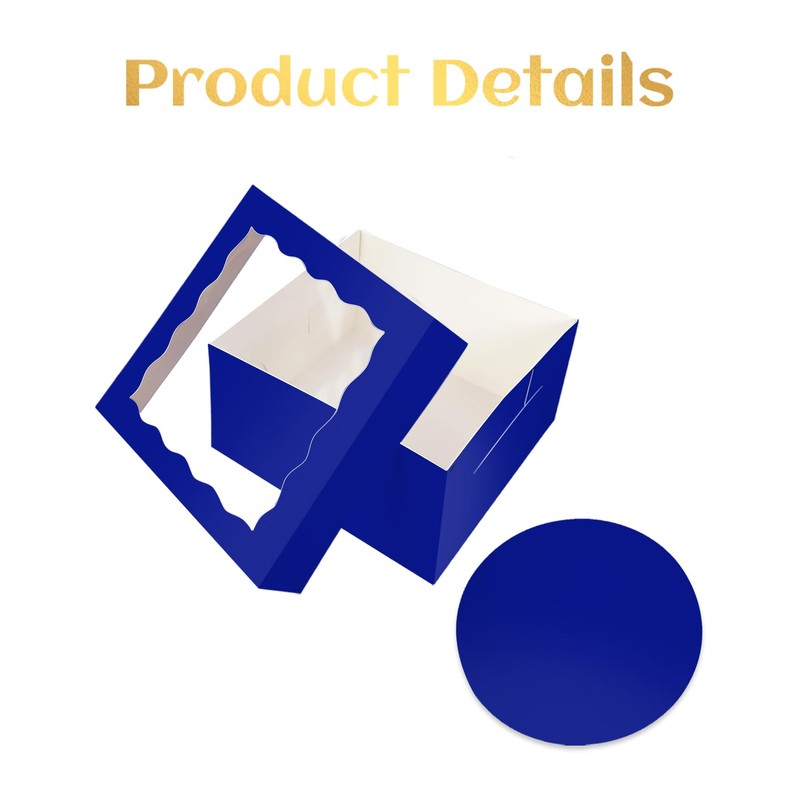 qiqee qiqee 12x12x6 Cake Box, 18 Sets Gemstone Blue Cake Box with Window 18 Sets 12" Gemstone Blue Cake Round Boards, 12inch Cake Containers