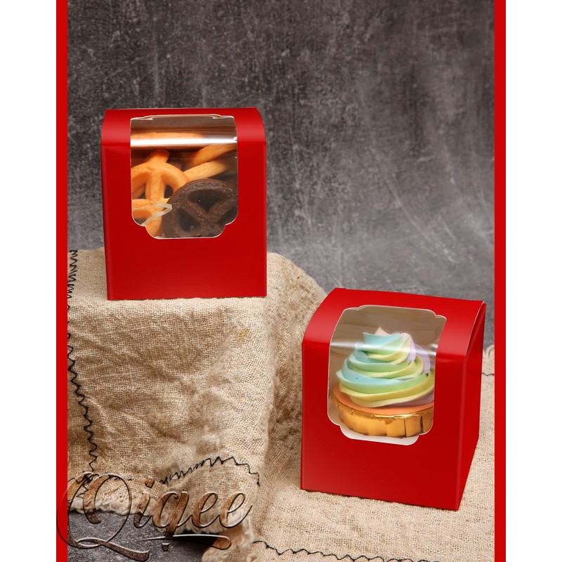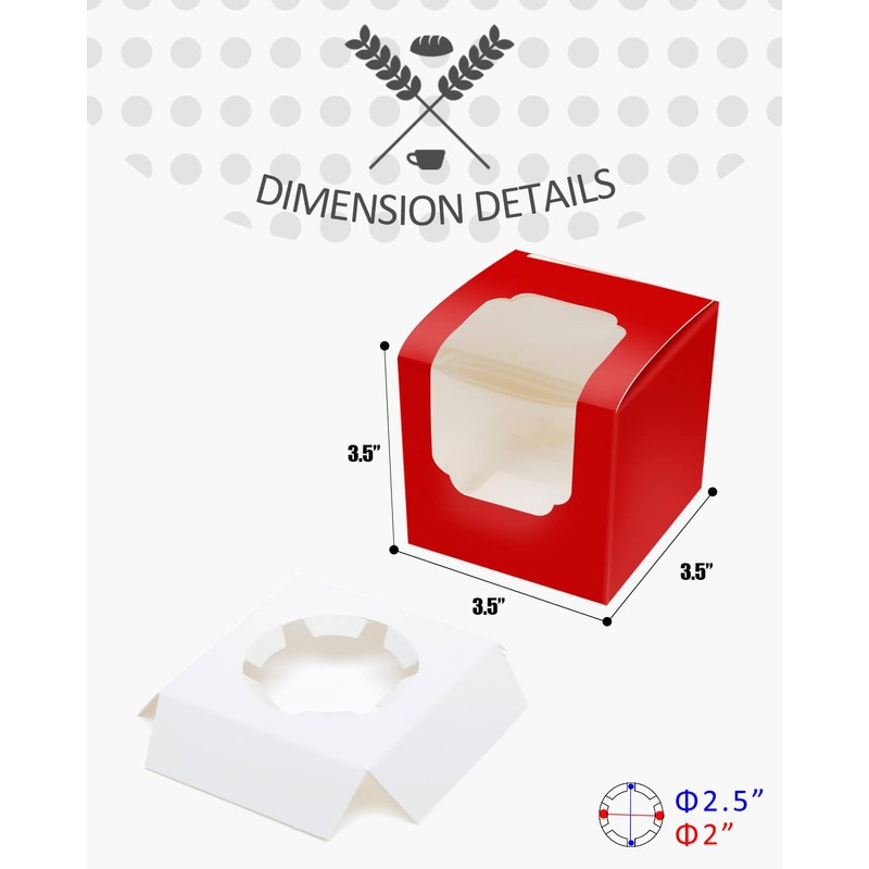 qiqee Red Cupcake Boxes Individual Cupcake Container 60pcs 3.5" x 3.5" x 3.5" Auto-Popup Single Cupcake Boxes (60 Boxes+60 Inserts)