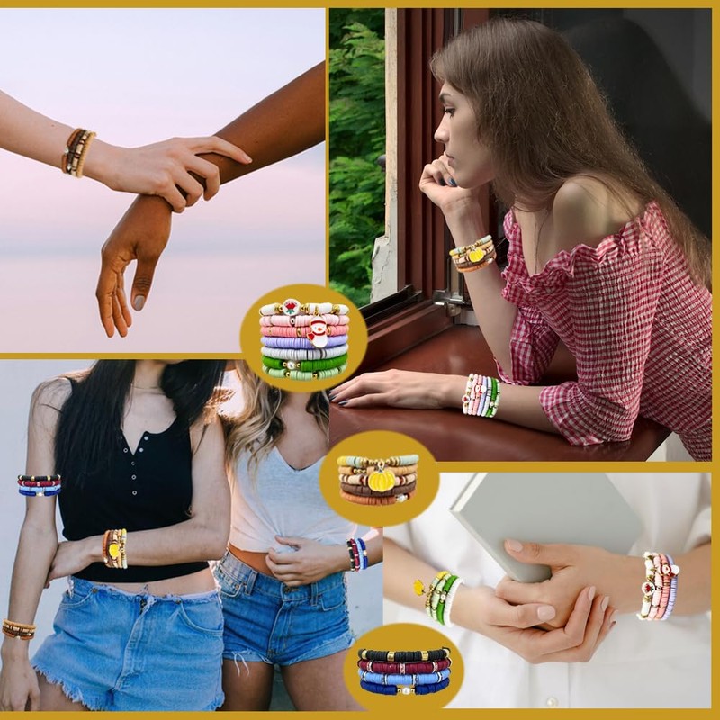 QiQnHngD 10 Strands Clay Bead, Heishi Beads for Bracelet Stack, Earth Tone Clay Beads for Adults, Flat Clay Beads Kit for Friendship Bracelets, Neutral Clay Beads Bracelet Making Kit(Navy)