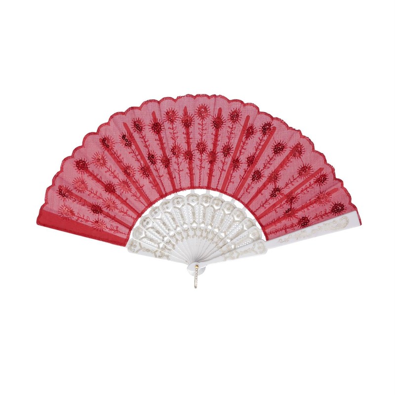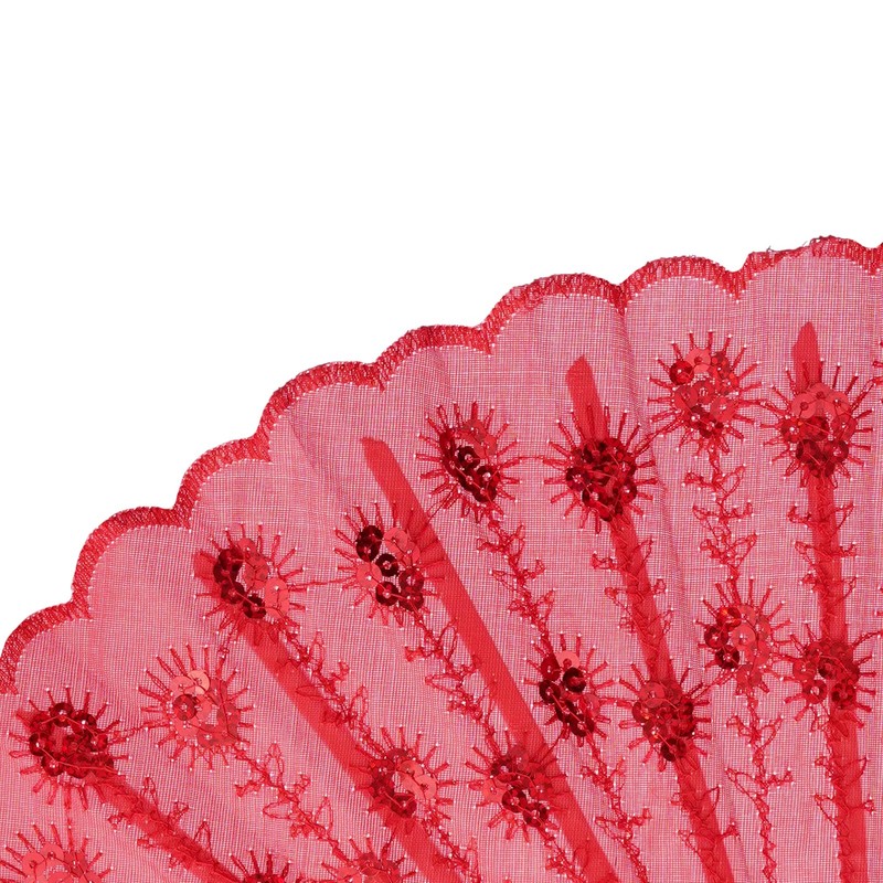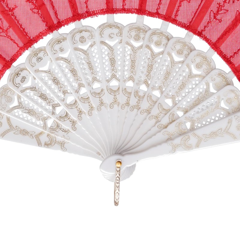 These stunning floral hand fans are the perfect accessory for adding a touch of elegance to any event. Made from high-quality fabric with peacock pattern, each fan is carefully crafted to ensure durability and beauty. The delicate lace trim and intricate hollow carved plastic staves make these fans a true work of art. With a convenient metal U ring handle, they are easy to hold and open. Whether you're attending a wedding, enjoying a night of dancing, or hosting a memorable party, these folding hand fans will keep you cool and stylish. Compact and lightweight, you can easily carry them in your bag for whenever you need a refreshing breeze. Don't miss out on the opportunity to own these fashionable accessories.