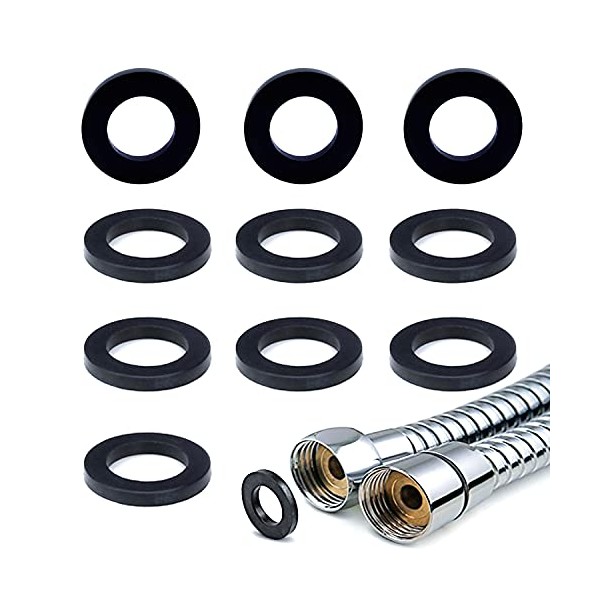 QISF Shower Hose Washers,10 Pack Shower Head Washers Rubber Washers Seals,1/2 Inch Hose Washer Seal for Shower Head and Hose(Black)