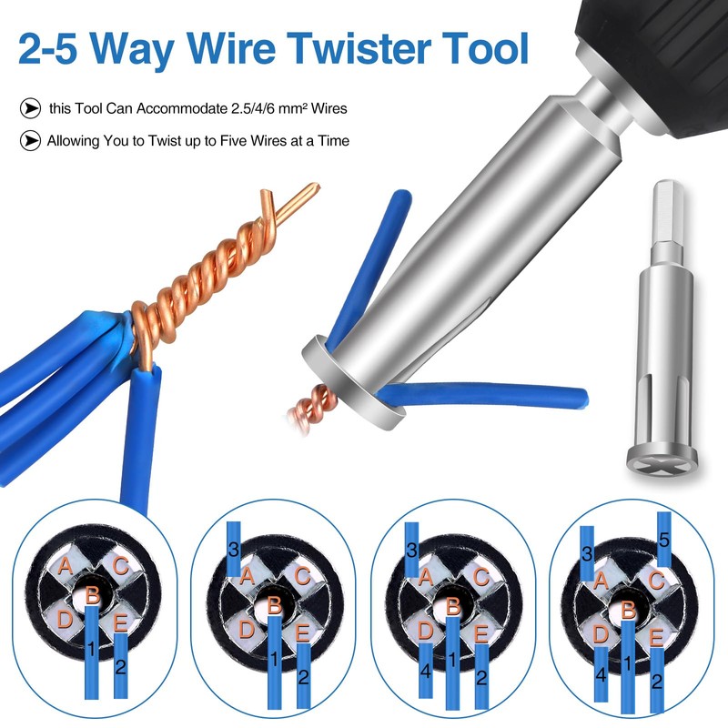 • Wide Application: wire stripper tool Designed for Electricians, this Tool Can Accommodate 2.5/4/6 mm² Wires, Allowing You to Twist up to Five Wires at a Time for Fast and Reliable Connections