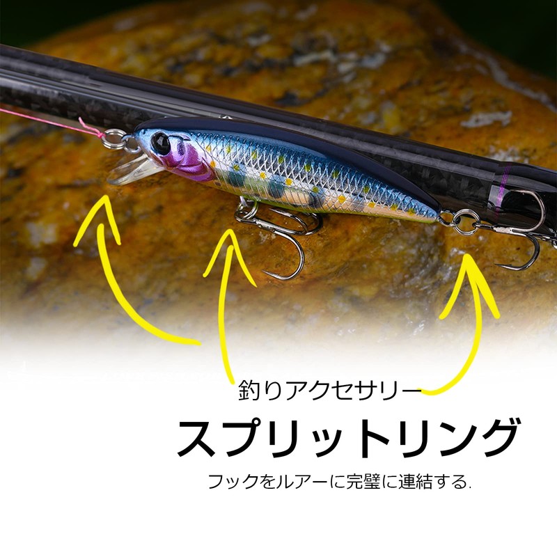 - It is not only strong but also flexible for fishing split rings, lure assistant rings that close tightly and restore to prevent gaps, and greatly reduce the trouble of line pinching and ring pulling. In addition, the surface has been treated with a special treatment to resist rust and prevent deterioration