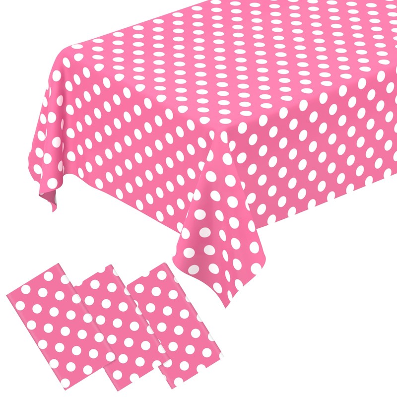 QISOLIY 3 Packs Minnie Mouse Table Cloths Pink Polka Dot Tablecloth Disposable Plastic Waterproof Picnic Table Pink and White Dots Minnie Tablecover for Birthday Party Bridal Shower 54 x 108 Inch