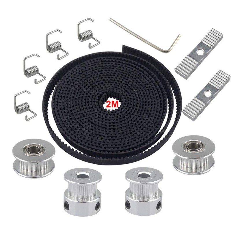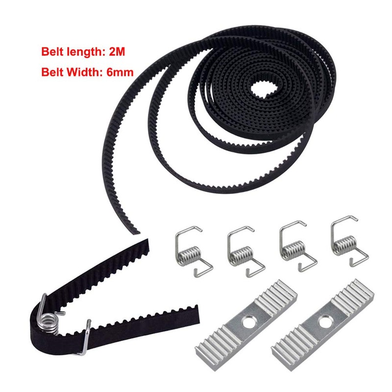 QitinDasen 2 m GT2 Timing Belt 2 mm Pitch 6 mm Width, with 2 x Timing Belt Pulley and 2 x Idler 20 Teeth 5 mm Bore, 4 x Tensioner Torsion Spring, 2 x Timing Belt Clamps, 2 mm Allen Wrench