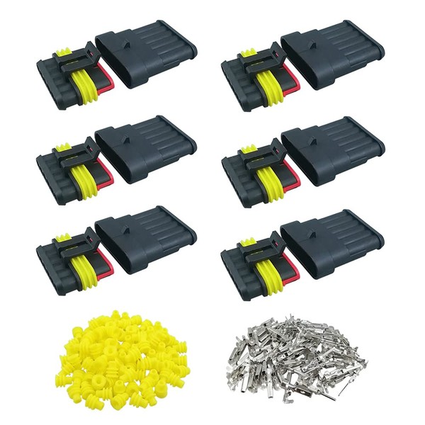 QitinDasen 6 Set 6 Pin Waterproof Car Electrical Connectors, Sealed Waterproof Electrical Connector Plug Socket Kit, for Car Truck Boat
