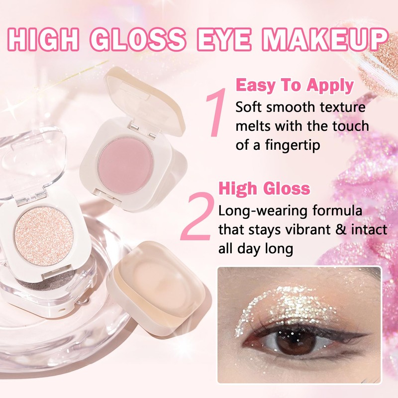 • 【Portable Design】The small round box design is perfect for makeup and touch-ups on the go,and comes with a soft eyeshadow brush for easy application,making it easy to create a charming daily eye makeup
