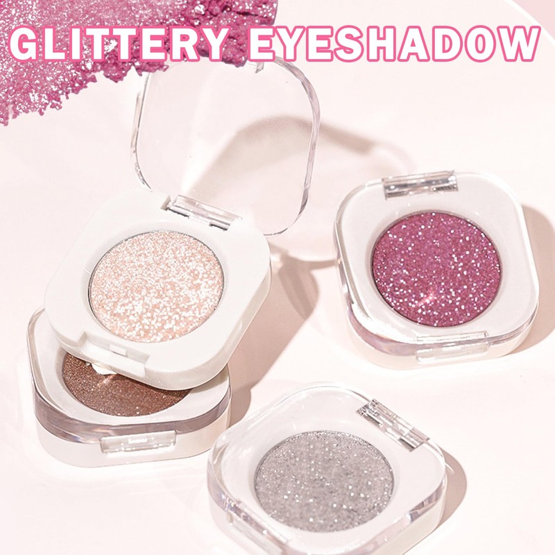 QIUFSSE Glitter Eyeshadow Bright Purple Single Eyeshadow,Ultra Fine Shimmer Eyeshadow Lightweight Sparkling Blendable Formula,Daily Multiuse Glossy Eyes Makeup (08 Glam Rock