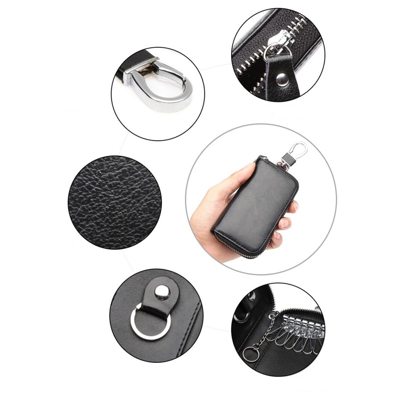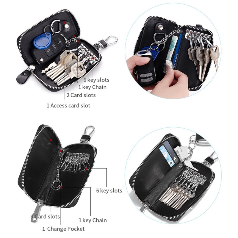 - Multifunctional: Our key case has several functional areas that meet your daily needs. It has six key hooks on which you can store your keys neatly without worrying about loss or mess; a note compartment inside the leather key case in which you can store cash; and a card compartment on each side for bank, there is also a car key fob hitch.