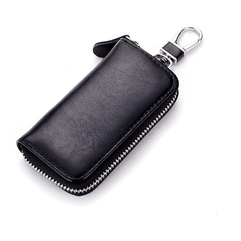 QIUPFGUT Leather Key Case for Men and Women, Leather Key Case, Wallet, Small Key Case, Universal Car Key Ring, black