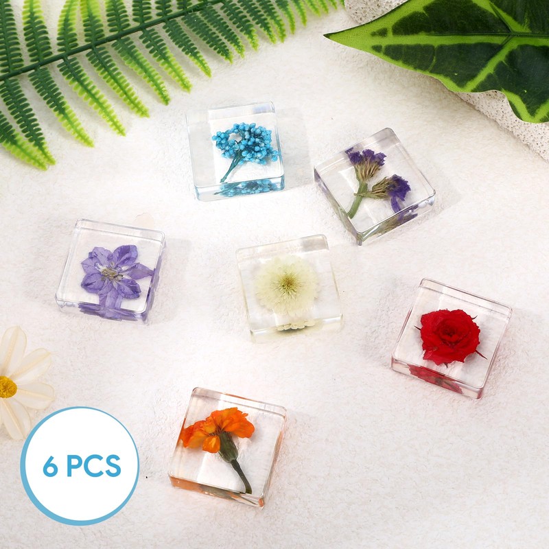 This set of 6 resin paperweights features real pressed flowers encased in clear, durable resin. Each piece showcases different botanical specimens, offering both decorative and educational value.