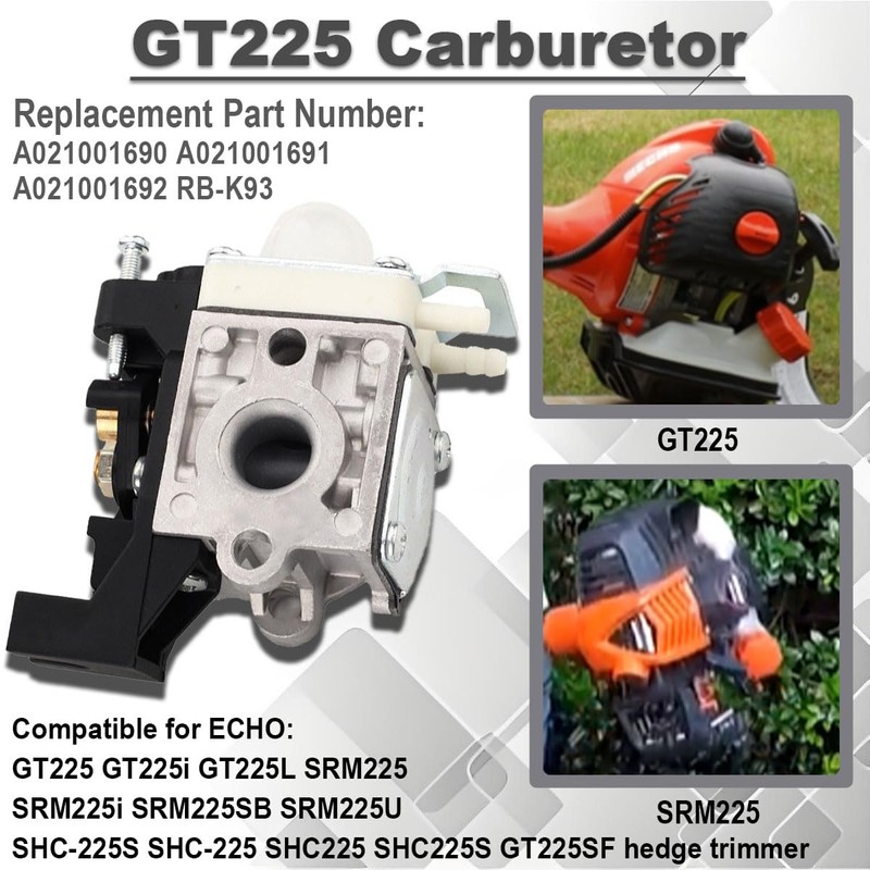 Qiuwanzia GT225 SRM 225 Carburetor for Echo GT225i GT225L GT225SF SRM225 SRM225i SRM225SB SRM225U PAS225 PE225 PPF225 SHC225 SHC225S RB-K93 Trimmer Weedeater Power Pruner Edger Replace Parts