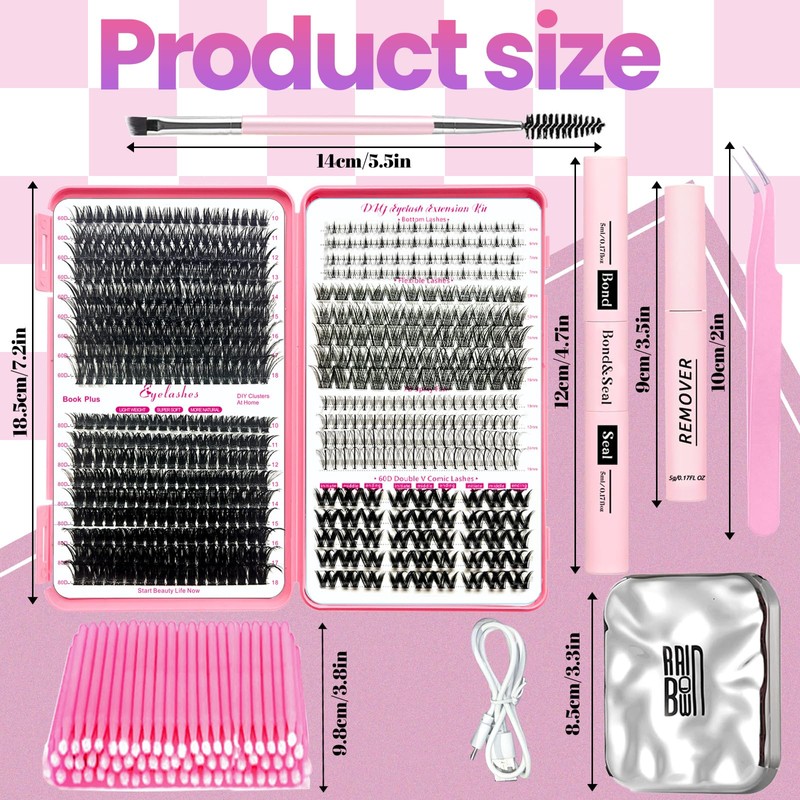 - You will get: 1 rechargeable pocket travel mirror(1X 2X magnification), 584 individual lashes clusters in each box, 1 eyelash bonding and sealing, 1 eyelash remover, 1 tweezers, 1 reusable eyelash brushes, 100 mini applicator. Individual lashes clusters 6 different styles can create versatile and charming eyelashes. The Qiveaory diy lash extension kit is a must-have tool for beginners or enthusiasts of daily eyelash extension.