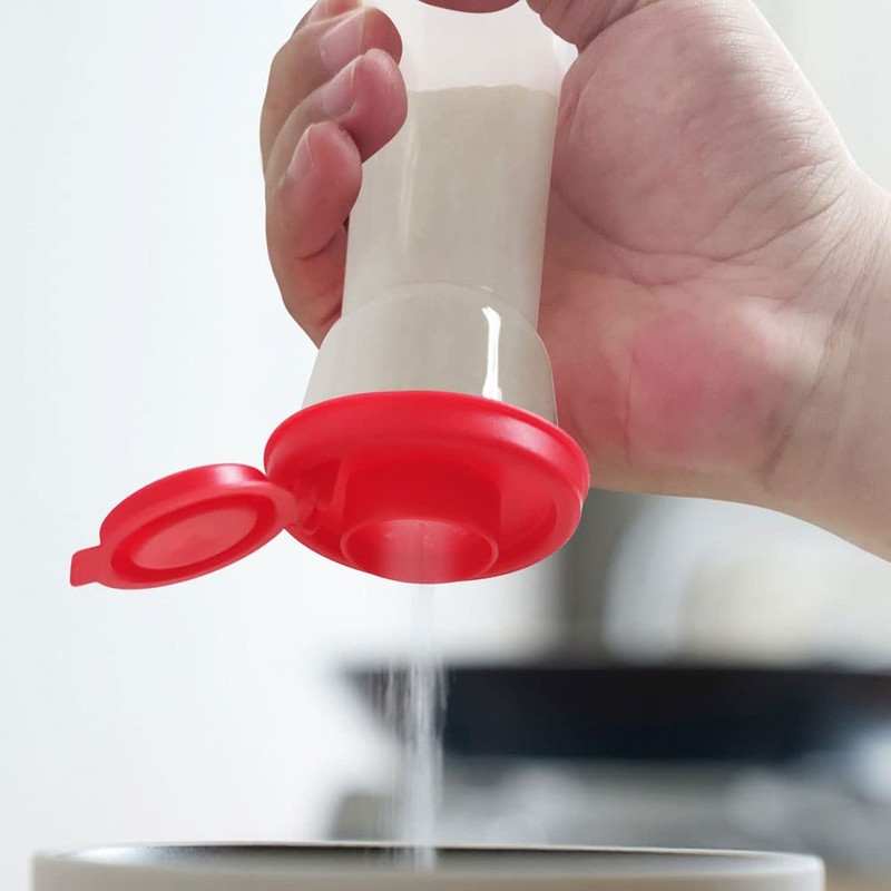 QIWYGPYQ 4 Pack Salt & Pepper Shakers Set, Hourglass Shakers with Lids, Large Moisture Proof Salt Shaker Pepper Food Containers for Cooking Kitchen Baking Salt Candy, Red and Blue
