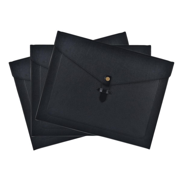 QiXin Black Leather File Folder Letter Size, File Organizer, Important Document Folders with Pockets, Document Organizer, Laptop Sleeve Notebook Case, Paper Storage, A4 Envelopes Filing Folder 3PCS