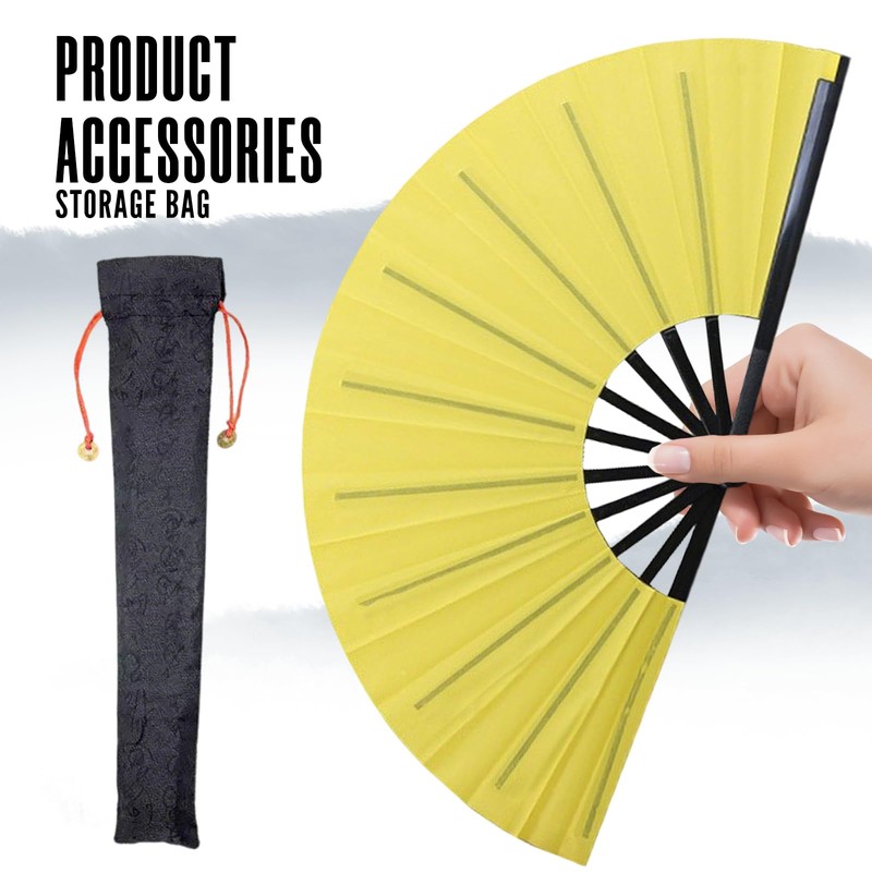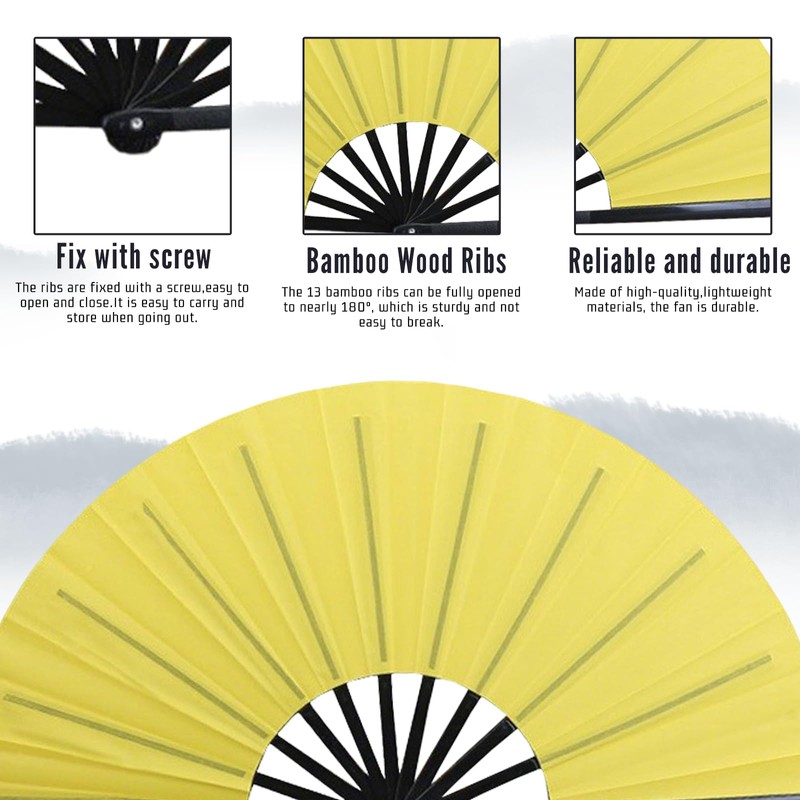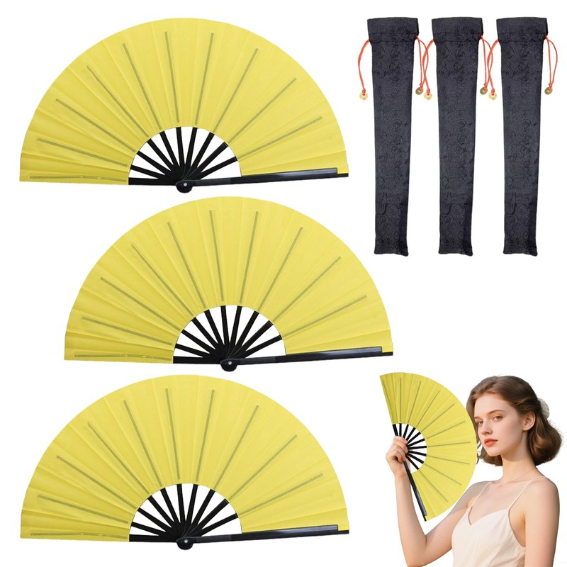 QIYUDA 13inchs Glitter Large Folding Popping Fan Line Dancing Fan, Big Foldable Boots on The Ground Hand Handheld Line Dance Clap Fans (3, 3 Pcak Yellow(Not Glitter))
